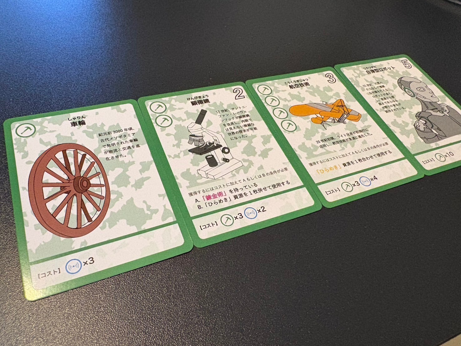 発明を作り、文明を発展させていく拡大生産カードゲーム