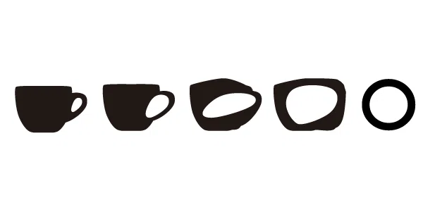 「トポロメモリー」は、なんとダイソーで買えるゲームでありながら、高度な数学の分野である「トポロジー」の概念に触れることができるゲームです。トポロジーとは、図形をゴムのように変形させて議論する数学の一分野です。例えば、下記の画像のように、マグカップのシルエットとドーナツの形はパーツの数と穴の数が同じため、同じグループとみなされます。(『トポロメモリー』ルールブック全文公開より引用)