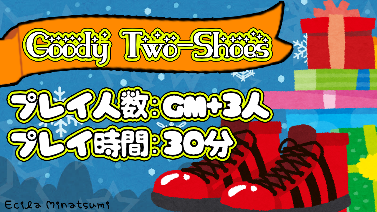舞台はクリスマス前の家庭で、長男の靴が家の中で片方だけ盗まれてしまったことから物語が動き出します。その場にいた家族のうち、母親は三つ子を集めて「靴を盗んだ犯人を見つけなさい」と命じます。プレイヤーは、この三つ子のうちの3人をそれぞれ担当し、「自分こそが本当に良い子だ」と思いながら、互いを疑いつつ犯人探しを進めることになります。短時間で遊べる一方、キャラクターの“表の顔”と“裏の気持ち”をどう演じるかによって卓ごとの雰囲気が変わる、ロールプレイも楽しい作品です。