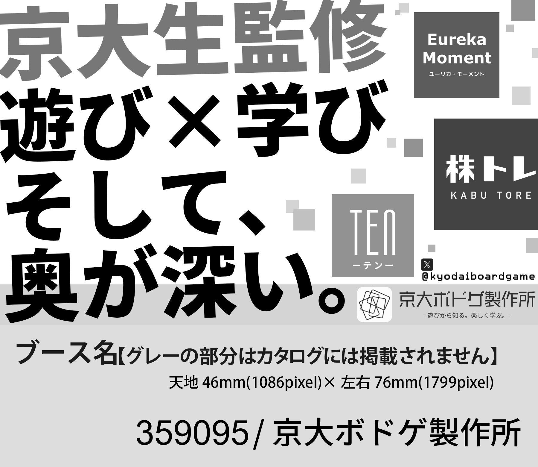 ゲームマーケット公式サイトの「ブース一覧」に載った京大ボドゲ製作所のブースカットは以下のような感じです。